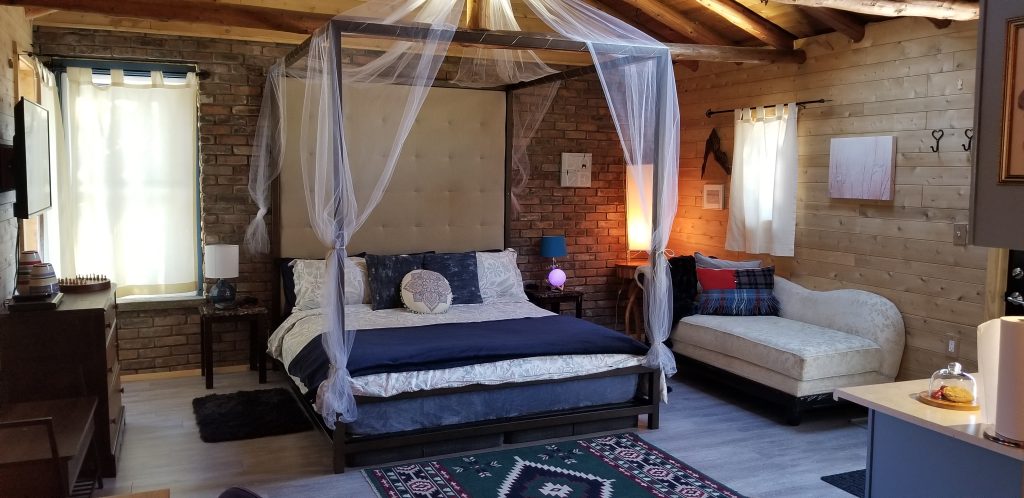 On a property surrounded by forest, the Stone Studio B&B is a truly unique spot. This private guest suite has a king-size canopy bed, a well-appointed kitchenette, 3-piece bathroom and outdoor amenities that include a 4-season hot tub. Please explore this site and if you like what you see, click the Reserve link to book your reservation. We would be delighted to host your vacation on the Peninsula!